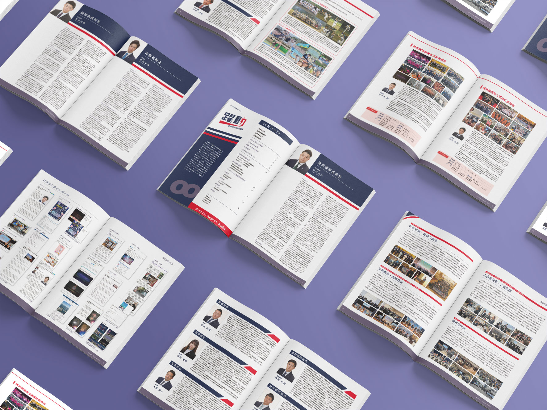 JCI横浜の毎年発行される事業報告書のデザイン制作を毎年担当していました。多くの関係者に読まれ、資料としても使われるため、読みやすさを重視して作成しています。