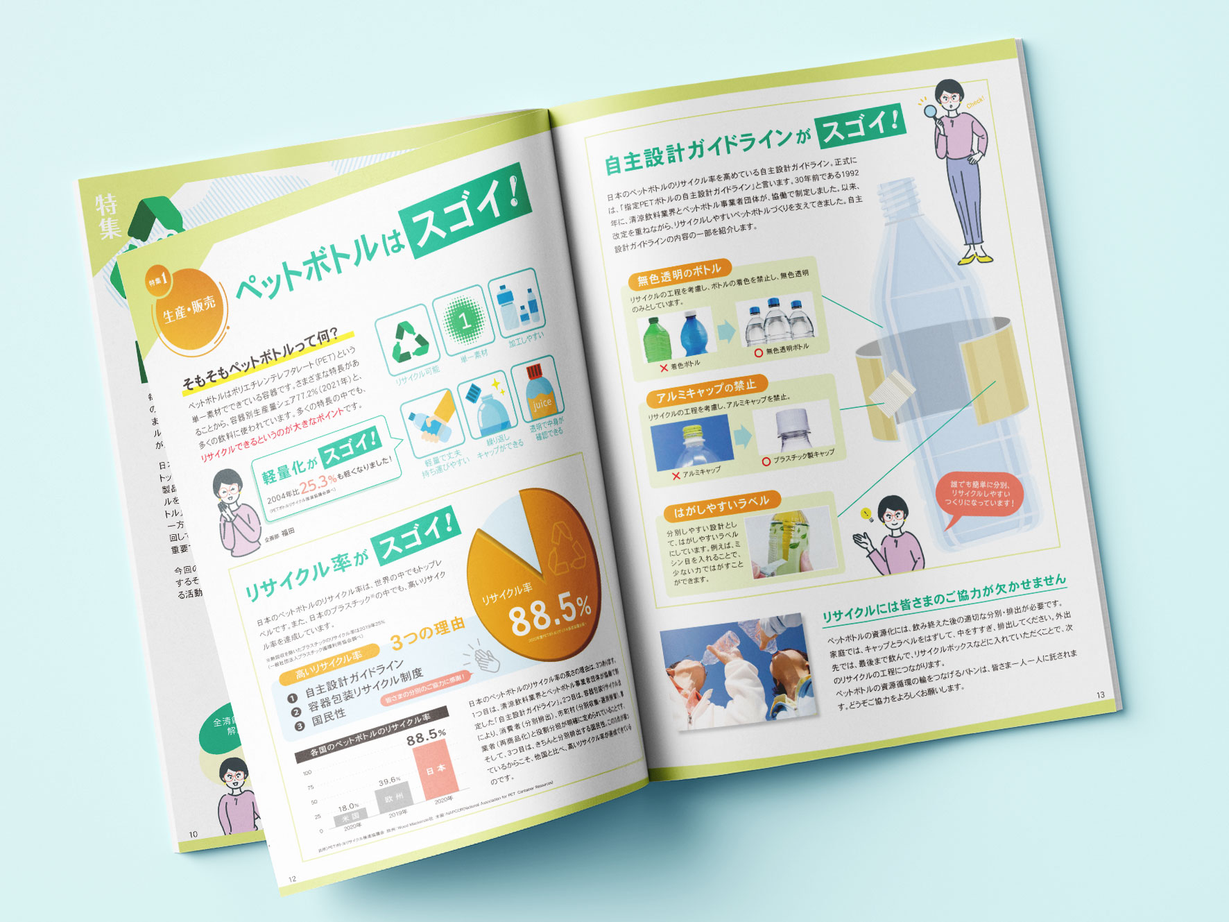 - クライアントから「この業界の事を知らない人にも内容が伝わりやすい構成にしてほしい、雑誌のように読みやすいレポートにしたい」という要望があり、図解や写真、余白を活かした軽やかなレイアウトを意識しました。ボリュームのある内容でもストレスなく読み進められるよう、視線の流れに配慮した設計とし、カラーは明るく爽やかなトーンで統一。誠実さや信頼感が伝わるようなやさしく親しみやすい印象に仕上げています。外部ライターと連携しながら内容を精査し、誰にとってもわかりやすく、かつ正確に伝わるよう工夫を重ねました。