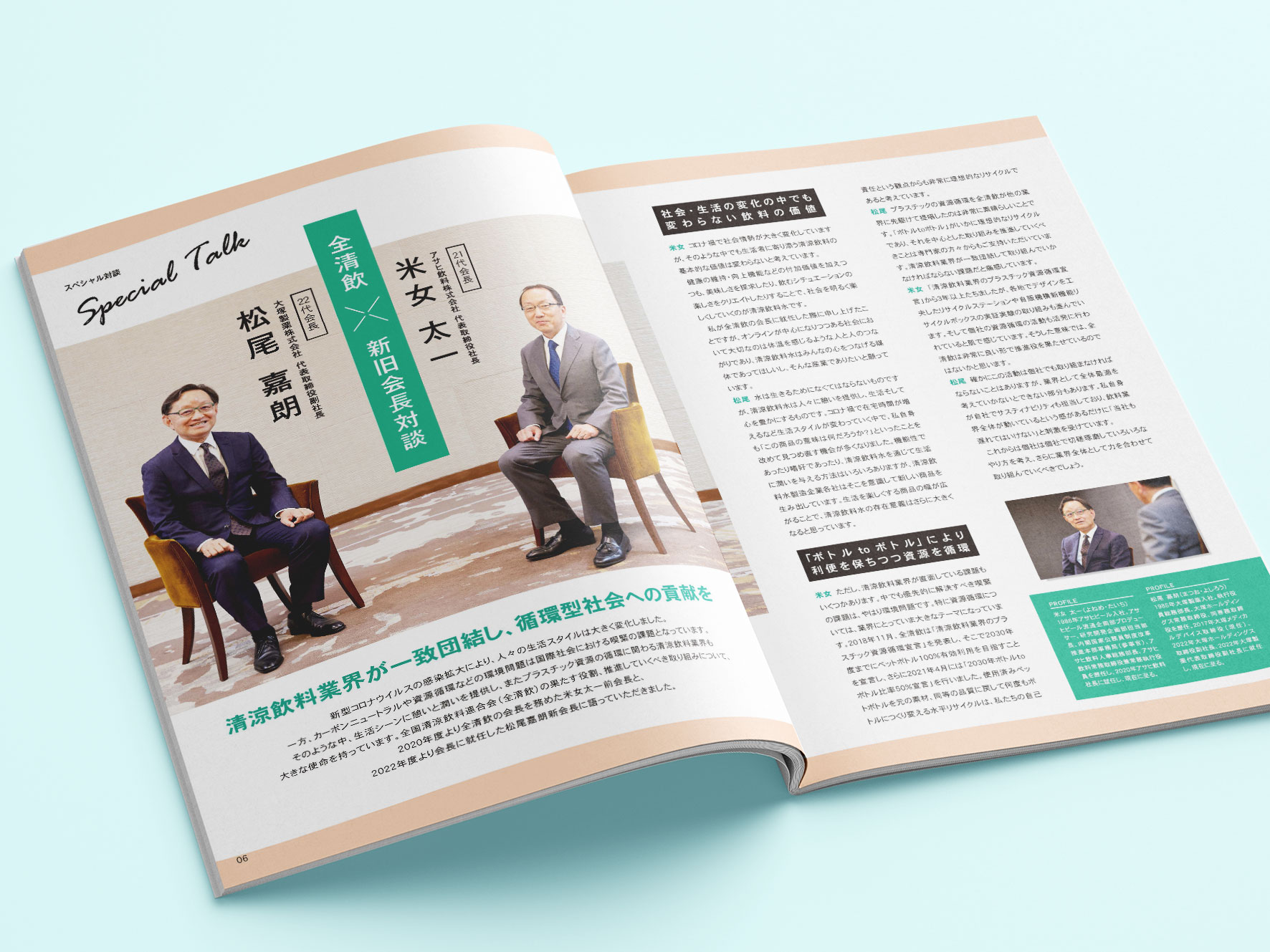 毎年発行している活動レポートのデザインを毎年担当していました。業界関係者だけでなく一般の読者にも伝わる、親しみやすく読みやすい誌面づくりが求められました。複数部署による校正確認や外部ライターとの連携など、関係者が多い中でタイトなスケジュールの中、丁寧に調整しながら進行しました。